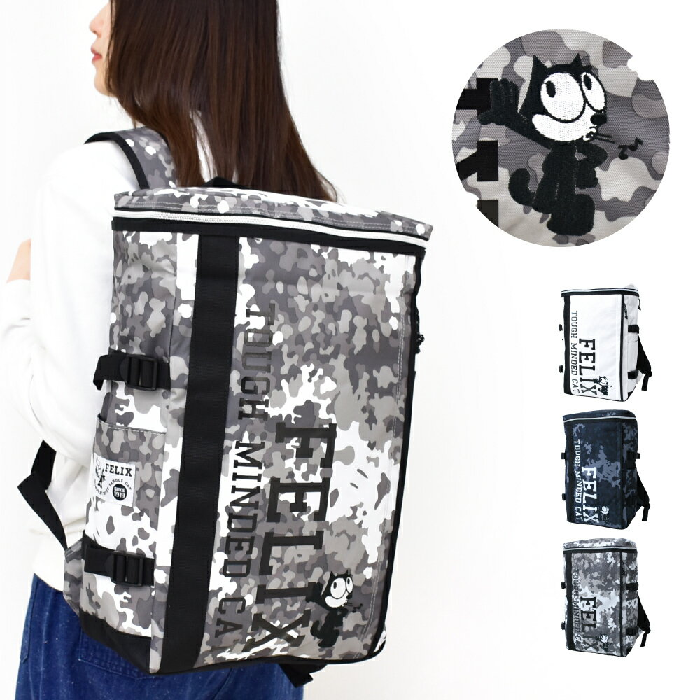 フィリックス リュック スクエア ボックス型 マチ 大きい レディース 女子 カジュアル ストリート 大容量 20L A4対応 個性 黒猫 通勤 通学 旅行 大人 大学生 高校生 中学生 リュックサック バックパック メンズ 男子 ブランド 人気 おしゃれ かわいい かばん キャラクター