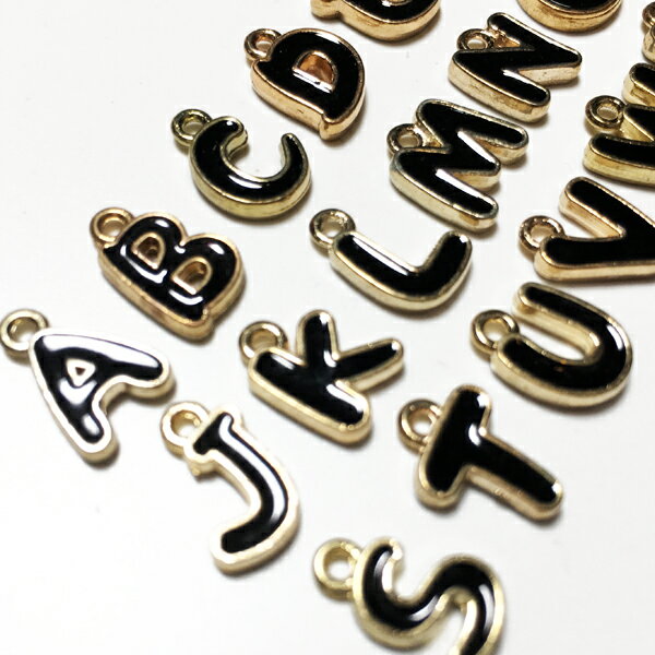 半額SALE!【アクセサリーパーツ】《チャーム》アルファベットモチーフ [N~Z] ブラック×ゴールドカラー/キーホルダー 携帯ストラップ ブレスレット