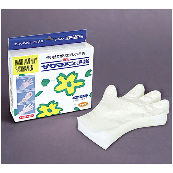 サイズ:全長225mm 材質:ポリエチレン手のひら周りサイズ:約22cm厚み:18ミクロン入数:100枚・内エンボス加工サクラメン 手袋 キッズDX 内側エンボス手袋 100枚入り製造・検品・包装までクリーンルーム工場で一貫体制にて製造出荷されている、日本製品です。