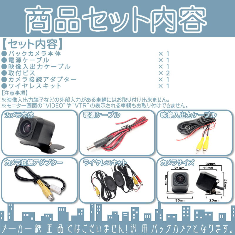 ■ワイヤレスキット付 映像信号を付属のワイヤレスキットで送受信させることが出来るため、 バックカメラの取付が比較的簡単に行なえます。